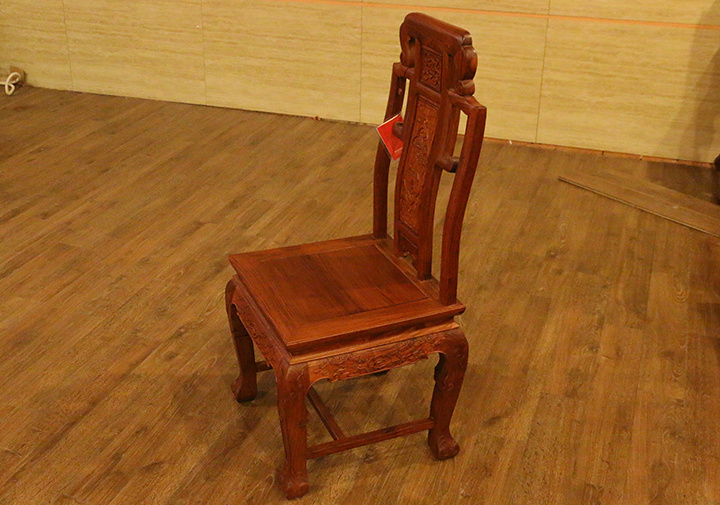 在自己實(shí)際的日常生活當(dāng)中,反而凳子用的較為普遍,一是感覺使用起來比較方便隨意,二是不用像椅子那么占用地方空間。印象當(dāng)中餐椅用到較多的場(chǎng)所,多是些高檔的餐館酒店禮堂,那一張張大大寬敞的圓形餐桌再環(huán)繞搭配上一面面靚麗白凈的椅靠背板配之的餐椅,多數(shù)帶有些歐式風(fēng)格家具的韻味,頗顯莊園親切之感,有些使人困頓閑暇陶醉恬適之意。而在那些正式莊嚴(yán)的場(chǎng)合,譬如舉辦婚禮、生辰大壽時(shí)亦或是為了迎接遠(yuǎn)方來賓,餐椅的選擇和搭配就更顯得重要和講究了,而今天,同樣筆者要給大家介紹的一款餐椅就是,優(yōu)質(zhì)緬甸花梨(學(xué)名:大果紫檀)制作的松鶴延年餐椅,一起來看看吧: