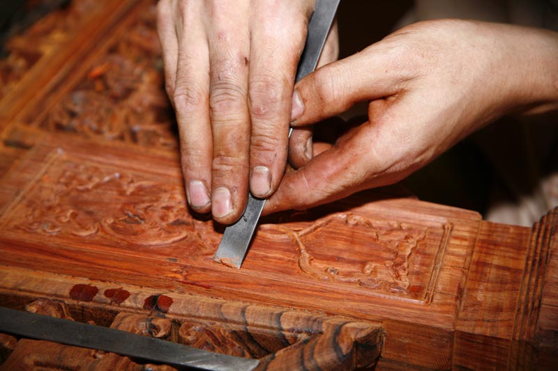 木雕,作為一門手藝,如今已越來越不為人們所熟知,而最寶貴的也是最值得最希望被流傳下來的——手工木雕,也漸漸失去了它固有的文化價值,消退在滾滾的歷史塵埃中,那一張張不再光鮮亮麗的古老桌床,那一條條開始掉色搖晃的凳椅幾案,還有那些,早已失去了原本味道,一件件不再完整清晰的手工藝品,共同述說著的,是一個我們這些生活于鋼筋混凝土高樓大廈里的人們永遠(yuǎn)無法體會感受的到美,它是那么近,近到可以就在我們眼前,又是那么遠(yuǎn),只留存在我們的腦海里,一代代人的記憶,慢慢沉淀......