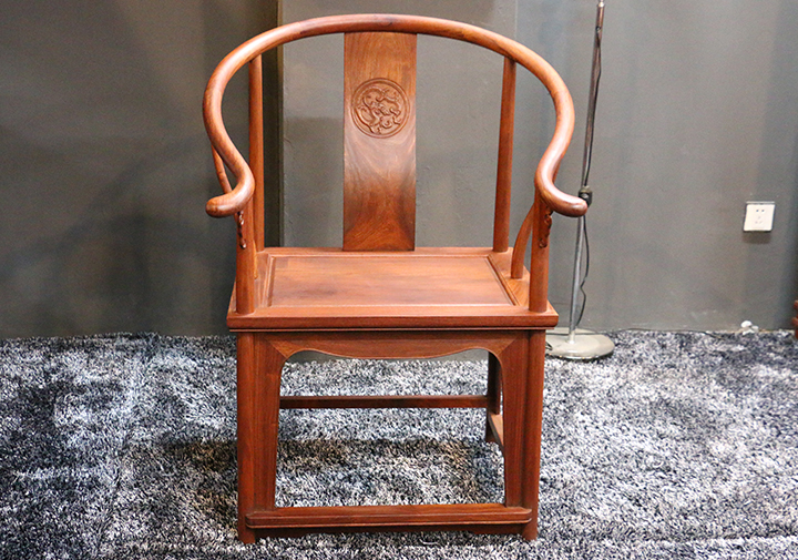 再則是官帽椅,官帽椅可分為南官帽椅和四出頭式官帽椅兩種。所謂四出頭,實(shí)質(zhì)就是靠背椅子的搭腦兩端、左右扶手的前端出頭,背板多為“S”型,而且多用一塊整版制成。南官帽椅的特點(diǎn)是在椅背立柱和搭腦相接處作出軟圓角,由立柱作榫頭,橫梁作榫窩的煙袋鍋式做法。椅背有使用一整版做成”S”形,也有采用邊框鑲板做法,雕有圖案,美觀大方。