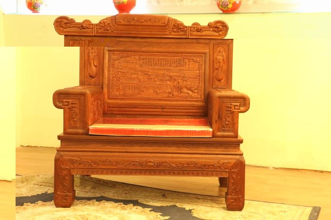 該篇文章共分三段落組成,除描繪了蘭亭的絕美景致以及王羲之一行人在集會(huì)時(shí)的所遇經(jīng)過外,也同時(shí)抒發(fā)了作者當(dāng)時(shí)因?yàn)槭⑹聼o常而作出的“修短隨化,終期于盡”的人生感嘆。不過,細(xì)細(xì)品味之,就能從文章的字句中,深切地體會(huì)到王羲之那積極入世的人生觀,與那老莊無為學(xué)說所形成的鮮明對比。而今天,我們福林堂紅木要為大家介紹的這一款沙發(fā)——壯志凌云沙發(fā),就是為了表達(dá)這一初衷和愿望,以寄托鴻鵠之志,壯志凌云。該款沙發(fā)以明清古典家具傳統(tǒng)工藝為基礎(chǔ),采用燙蠟的裝飾工藝,更好的展現(xiàn)了其木材優(yōu)美的紋理。沙發(fā)的背板處除雕刻有王羲之《蘭亭序》的浮雕字體外,還配有山水、亭臺(tái)樓閣、以及各種象征福壽之寓意的如仙鶴、壽瓜、蝙蝠、鳥鳳等多種吉祥紋飾,整體的畫風(fēng)顯得氣勢磅礴,極好地彰顯了主人的宏偉志向與不凡的人生追求。