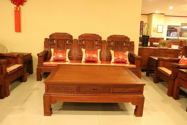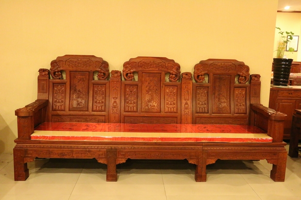 大家好,今天我們福林堂紅木要為大家介紹的這一款沙發(fā),其名字內(nèi)容較為通俗意賅——“豪華如意”。“豪華”之意:一是代表其所選用材質(zhì)——緬花的珍貴,二是因?yàn)槟歉∪A鐫秀裝點(diǎn)紋飾的富麗;而如意則指的是這些紋飾在其內(nèi)部所承載的深厚寓意,這其中包含有喻以吉祥富貴吸財之意的大象紋、代表祥和福瑞之意的麒麟紋、還有寓帶五福象征不老不衰的梅花紋、以及擁有幸福之意的蝙蝠紋、銅錢、魚紋、銅鈴紋飾等等,它們以物喻情,這也是紅木家具不同于多數(shù)一般類普通家具的重要標(biāo)志所在,可以說,它們已經(jīng)不單單是一件生活中的家具品那么簡單,這其中也包含了所使用主人內(nèi)在的精神世界追求和意志情感寄托之需要。