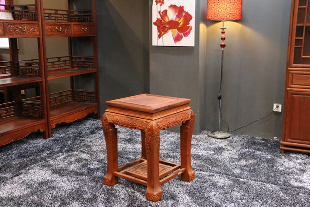 再往上,扶手處下端的前方位置均還外設有一小框格之抽屜,方便亦實用;而框格的上方則是兩處設計為鏤空式的長框格扶手,扶手左右的末端均以卷曲收尾,秀氣端莊圓潤舒適,而鏤空內則是以兩顆壽桃作為承托雕刻,形象意寓生動。另在實用性方面,該系列的沙發(fā)也借鑒了現(xiàn)代沙發(fā)座椅中軟綿舒適的使用特點,在座面上以及靠背板處還添備有一席軟墊以及靠背枕作為置換,根據(jù)環(huán)境需要以及個人使用習慣特點進行選擇性添置或撤換,十分方便。
