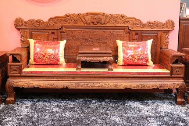 關于該系列沙發(fā)的具體詳情細節(jié),考慮到其雕琢繁冗圖案眾多的緣故,我們就著重從其紋飾入手,通過解析其寓意、并從外觀結構上依次進行介紹、另外針對產(chǎn)品的制作工藝、實用性等特點進行補充描述。