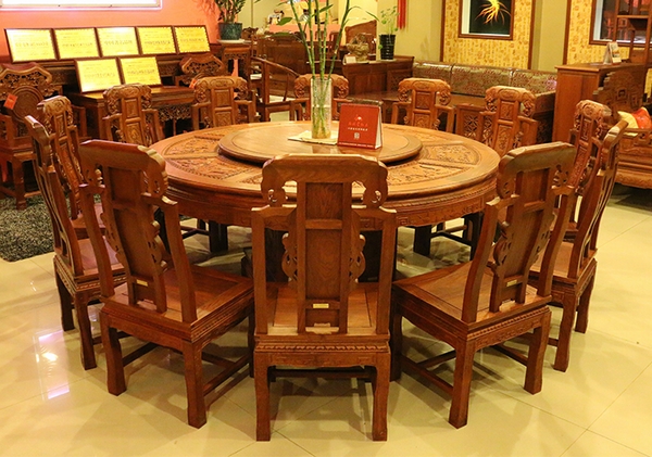 插花與志成紅木餐桌束腰以及餐椅椅背等處的雕刻花紋相得益彰,瞬間讓整個(gè)餐廳亮麗起來,讓人不得不贊嘆主人的品味......