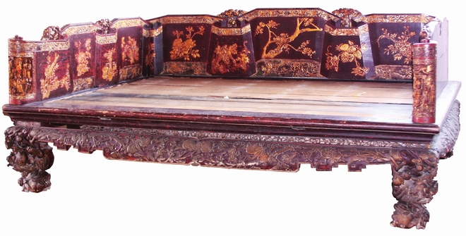 漆器床在清中期以前特別是在明代以前,歷來代表床的最高等級。明文震亨在《長物志·卷六·床》中寫道(床)以宋元斷紋小漆床為第一,小漆即精細的漆工藝。