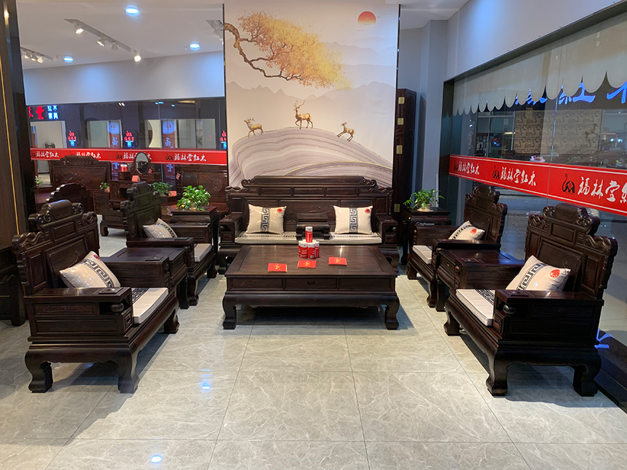 “U”形擺放,是客廳紅木沙發(fā)一種常見(jiàn)的擺放形式,適合于任何客廳。