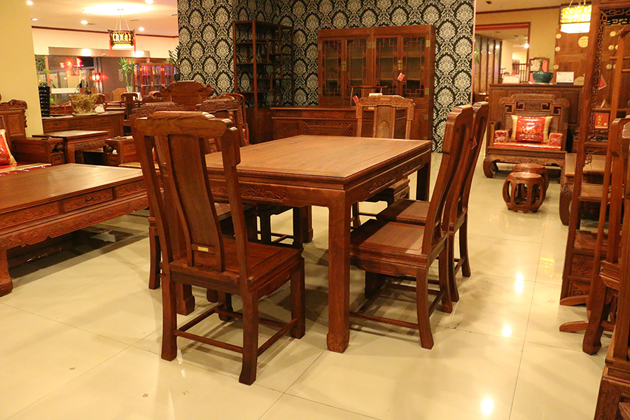 中西混搭中,清式紅木家具是被優(yōu)先考慮的,煥彩生輝、雕琢精巧的清式紅木家具與歐式風(fēng)格的宅院會(huì)愈加的適宜。深色系的清式紅木家具和喜用銀箔、金箔裝修的歐式宅院的金銀色彩更容易調(diào)配;精雕穩(wěn)重的清式紅木家具在歐式的居室中更能“壓得住局面”。